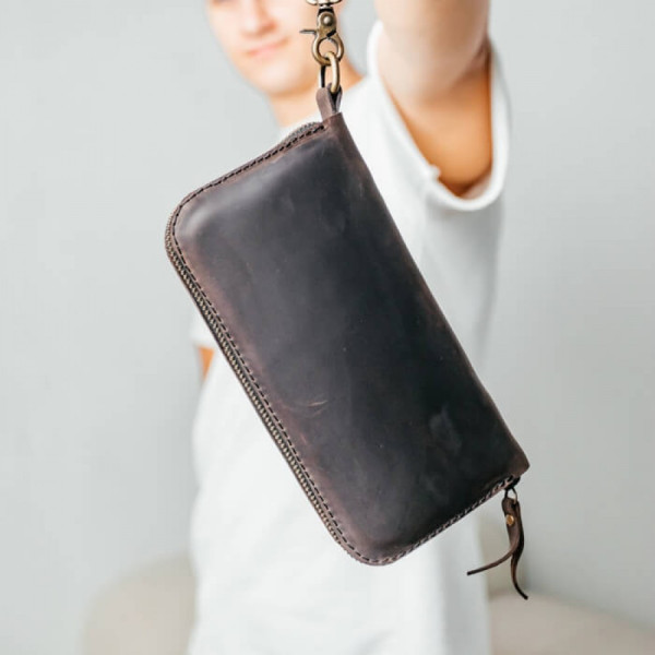 Клатч Арізонавиготовлений із міцноїнатуральної шкіри, із блискавкоюYKKнавколо.