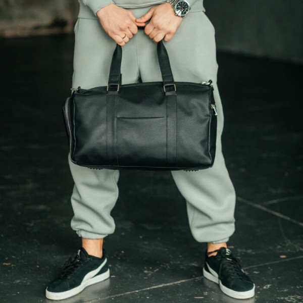 Спортивна сумка - це річ, яка потрібна для комфортних занять будь-якого виду спорту, і не тільки! Дорожня спортивна сумка стане в нагоді в щоденних поїздках. У відділенні взуття зручно зберігати пару взуття. Чорна тканина із штучної шкіри екологічно чиста.