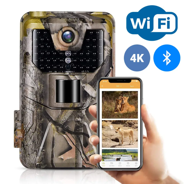 Фотопастка Suntek WiFi900pro з підтримкою WiFi та Bluetooth — це потужний пристрій для віддаленого спостереження за дикою природою. Вона має вбудований модуль WiFi, що дає змогу користувачам керувати пристроєм і переглядати фото та відео через спеціальний додаток на смартфоні.